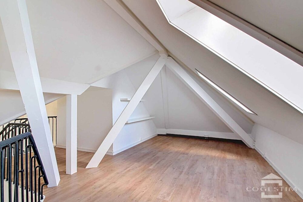 Il comprend au niveau des combles, les pièces à vivre, soit un grand séjour lumineux avec une cheminée ancienne et des espaces de rangements intégrés, une spacieuse cuisine entièrement agencée et équipée avec garde manger, un coin salle à manger ainsi que des WC visiteurs.