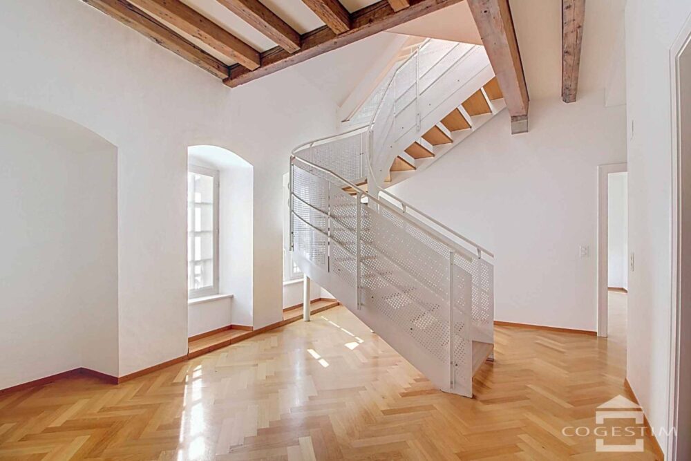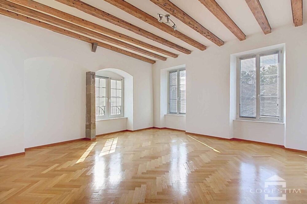 Dans le bourg historique au sein de l’immeuble de « La Couronne », à quelques pas du château, de ses commerces et de toutes commodités, ce magnifique appartement triplex jouit d’une situation de de premier ordre.