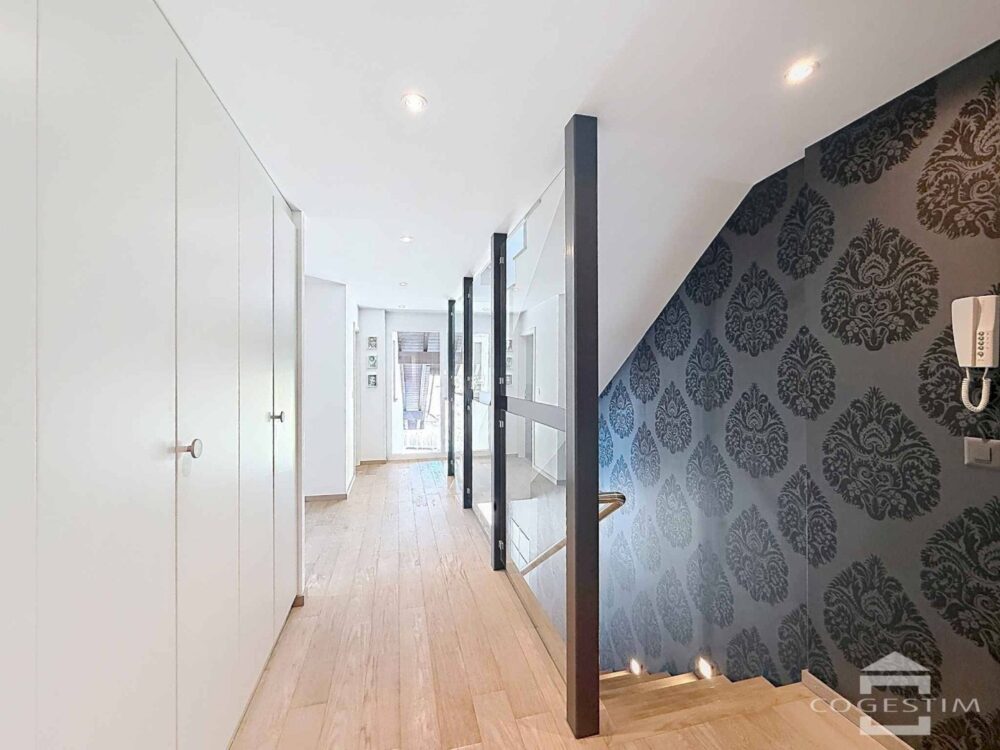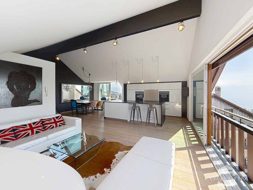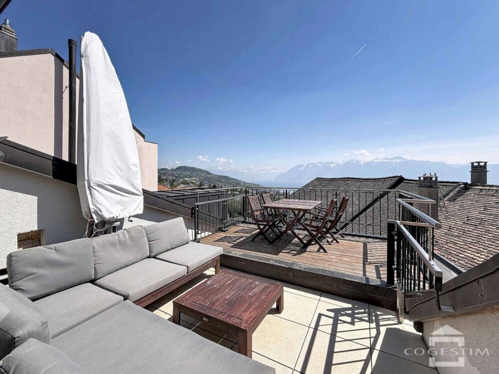 Situé dans un environnement villageois recherché à Belmont-sur-Lausanne, ce spacieux appartement de 5,5 pièces occupe les deux derniers niveaux d’un immeuble de caractère entièrement rénové entre 2011 et 2014. Issu de la transformation d’un bâtiment inscrit au patrimoine architectural vaudois, ce bien allie harmonieusement charme de l’ancien et confort contemporain.