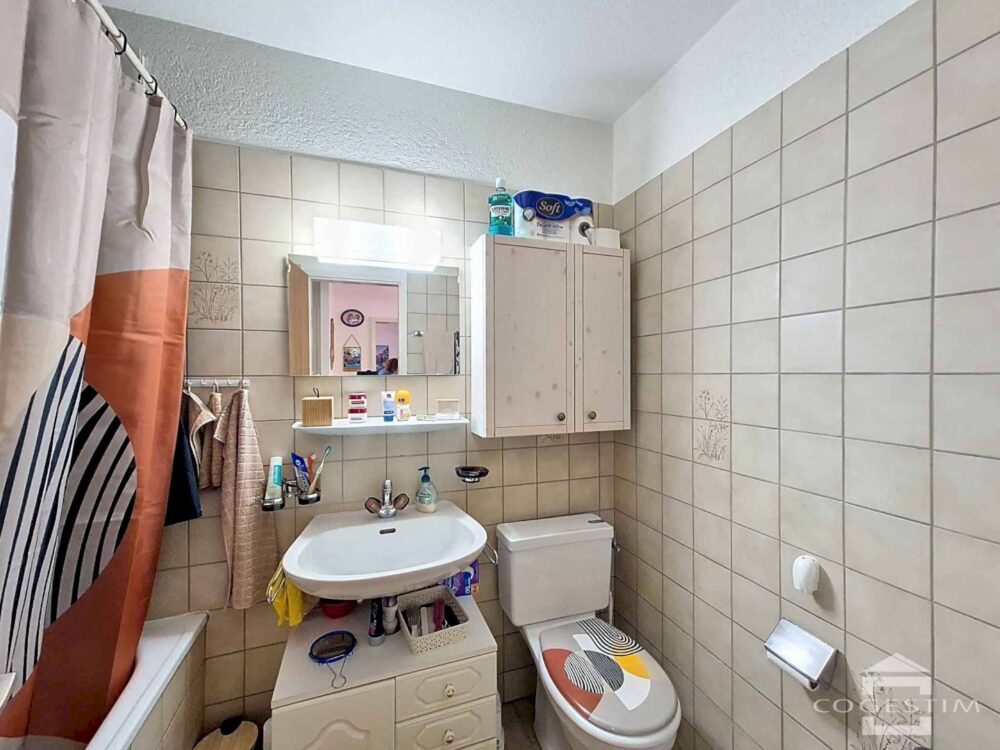 Cuisine semi-ouverte à rénover, salle de bain en bon état;