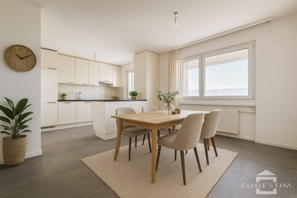 Situé dans un environnement verdoyant et recherché à Estavayer-le-Lac, ce superbe appartement de 4.5 pièces entièrement rénové séduit par sa surface généreuse de 129.9 m², son agencement fonctionnel et sa vue dégagée.