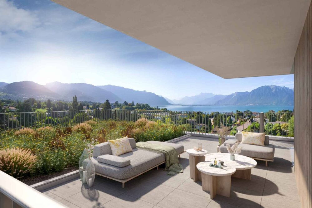 Situé dans un quartier résidentiel et verdoyant, les appartements profitent d’une magnifique vue sur le lac Léman et les montagnes environnantes. La position dominante garantit une grande privacité, un panorama exceptionnel et une luminosité optimale tout au long de la journée.