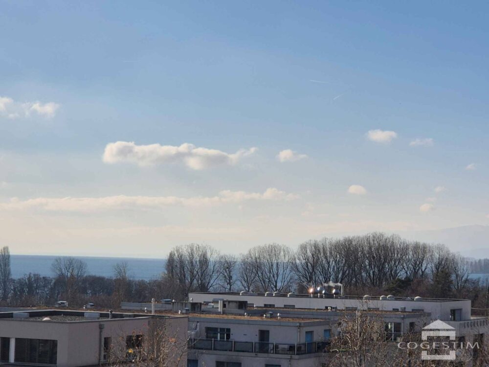 Accessible de l’entrée principale par un escalier et des ascenseurs, ce logement de plus de 80 m² habitables nets est composé de 3.5 pièces, dont la distribution optimale distingue clairement les espaces jour et nuit. L’appartement étant orienté plein Sud et équipé de grands vitrages, toutes les pièces profitent d’une remarquable luminosité et d’une vue appréciable sur le Léman et les Alpes. Dans le prolongement du séjour, la loggia couverte vous donnera l’occasion de profiter allègrement des beaux jours.