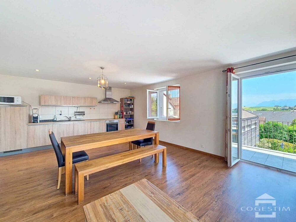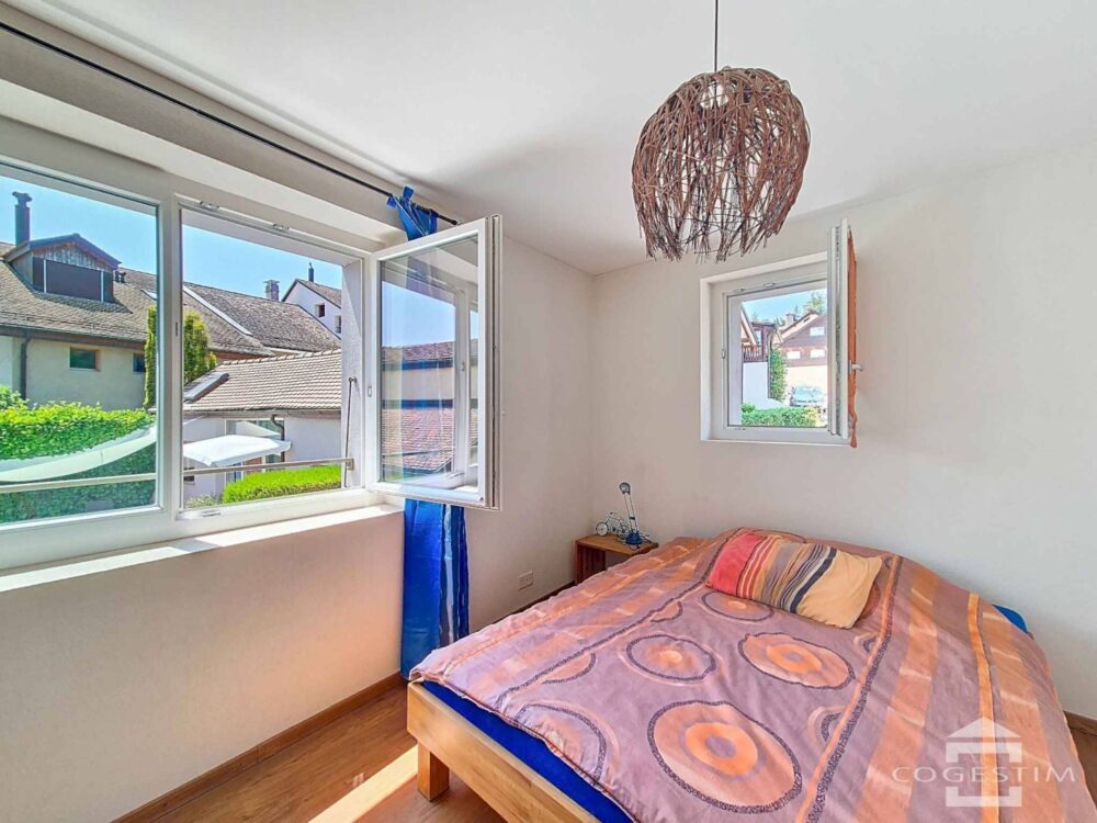 Le bien que nous vous proposons est situé au premier étage d’une maison villageoise transformée en petite propriété par étage en 2015. Totalisant 5 logements, elle est nichée en plein cœur du bourg et bénéficie d’une position dominante offrant un dégagement appréciable. La gare CFF est accessible à pied en moins de 10 minutes et les axes autoroutiers à environ 5 minutes en voiture.