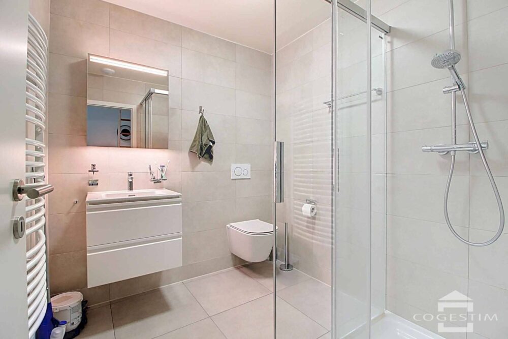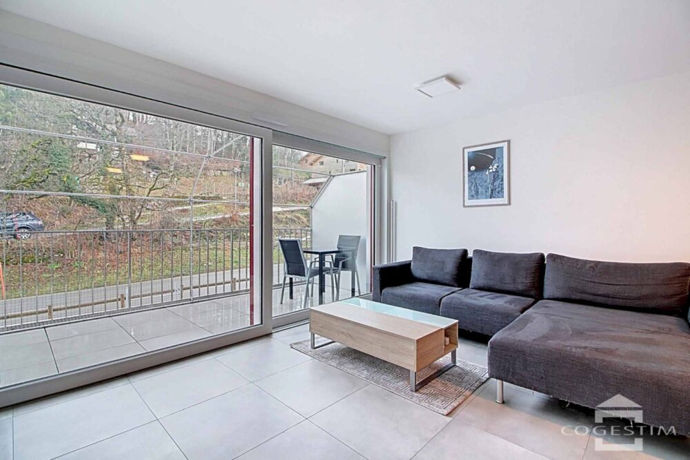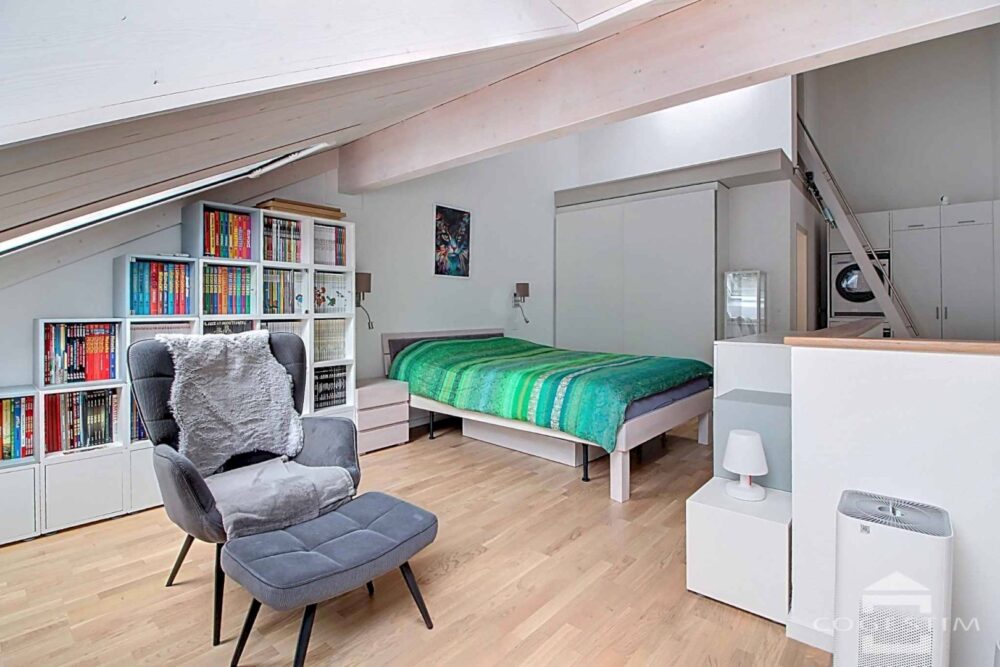 Ce bel appartement de 2 pièces en duplex d’une surface pondérée de 71.3 m² se trouve au 1er étage et combles d’un immeuble neuf situé à la sortie du village en direction d’Arzier-le-Muids.