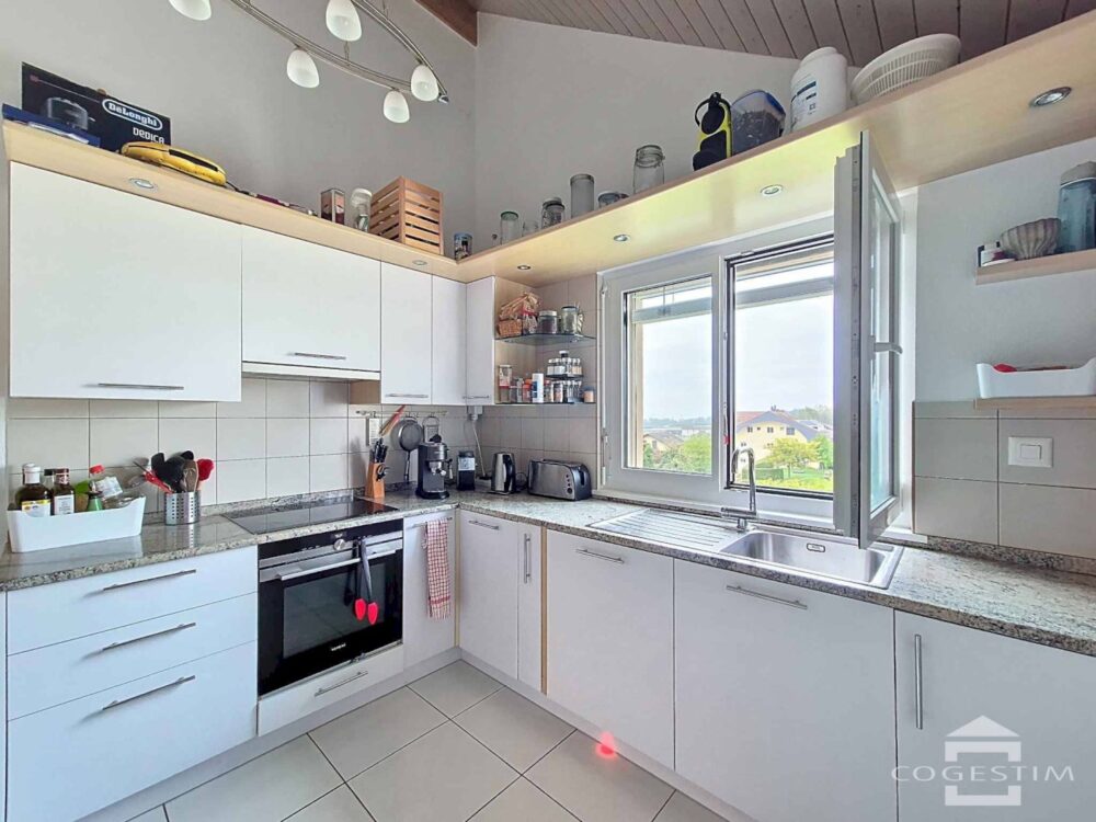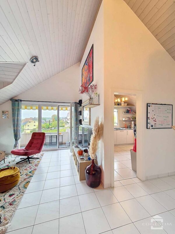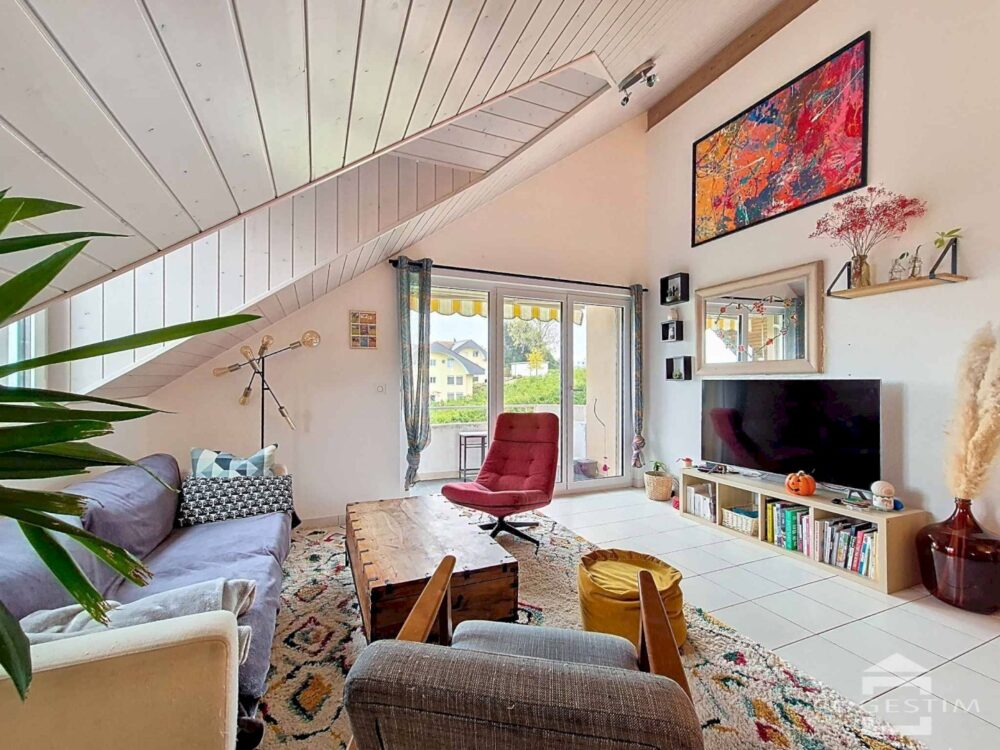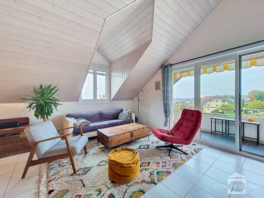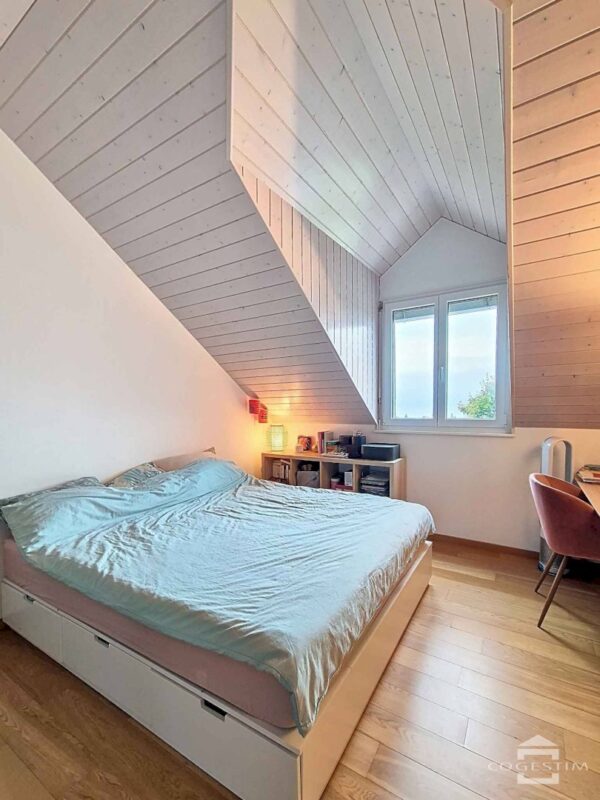 Le bien que nous vous proposons est situé dans les combles d’un petit immeuble érigé en 1992.Totalisant 3 logements, cette petite PPE est nichée dans les hauts verdoyants de la commune et bénéficie d’une position dominante offrant une vue sur le lac et les montagnes. En partie rénové dans les règles de l’art en utilisant des matériaux de première qualité, il s’étend sur près de 100 m² habitables.