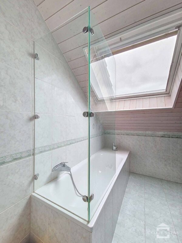 L’intérieur séduit par ses beaux volumes, sa remarquable luminosité, une cheminée chaleureuse ainsi qu’une suite parentale confortable.