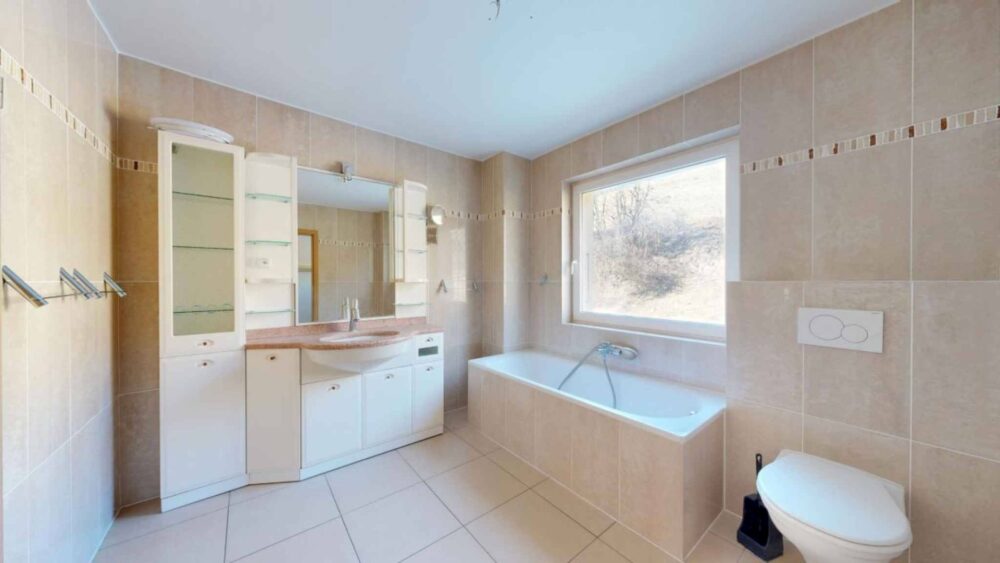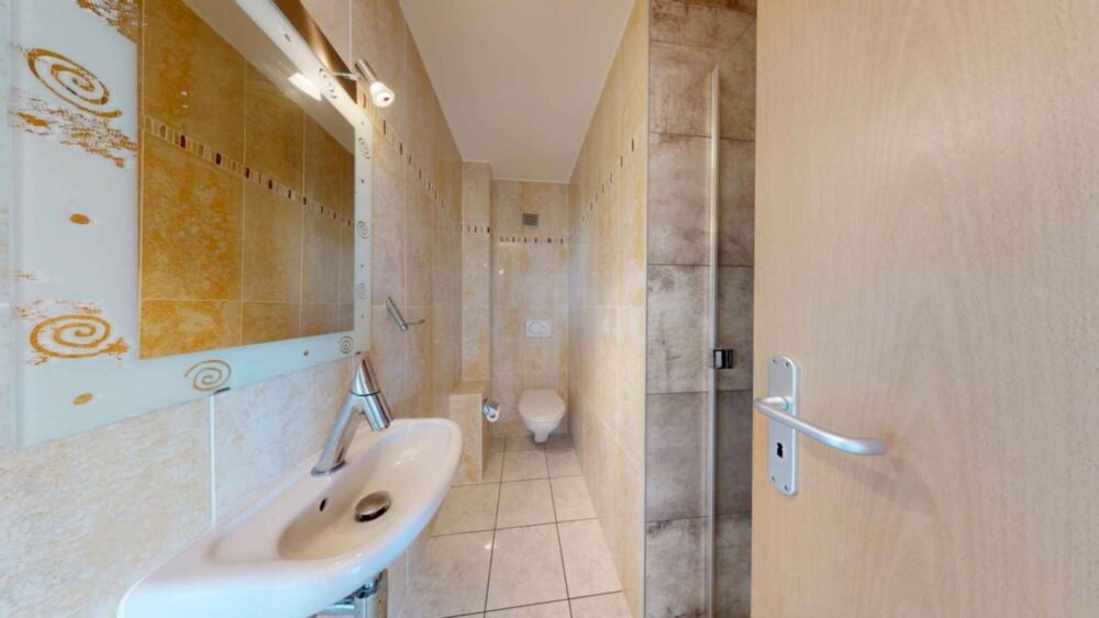– Carrelage dans les zones de vie/sanitaires, parquet stratifié dans les chambres