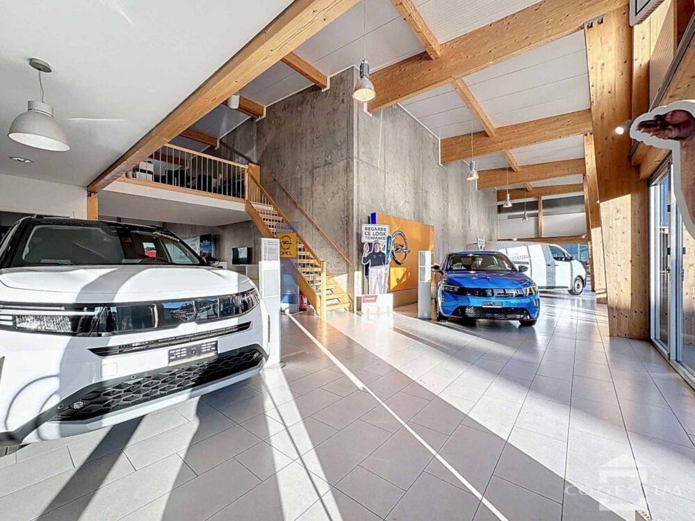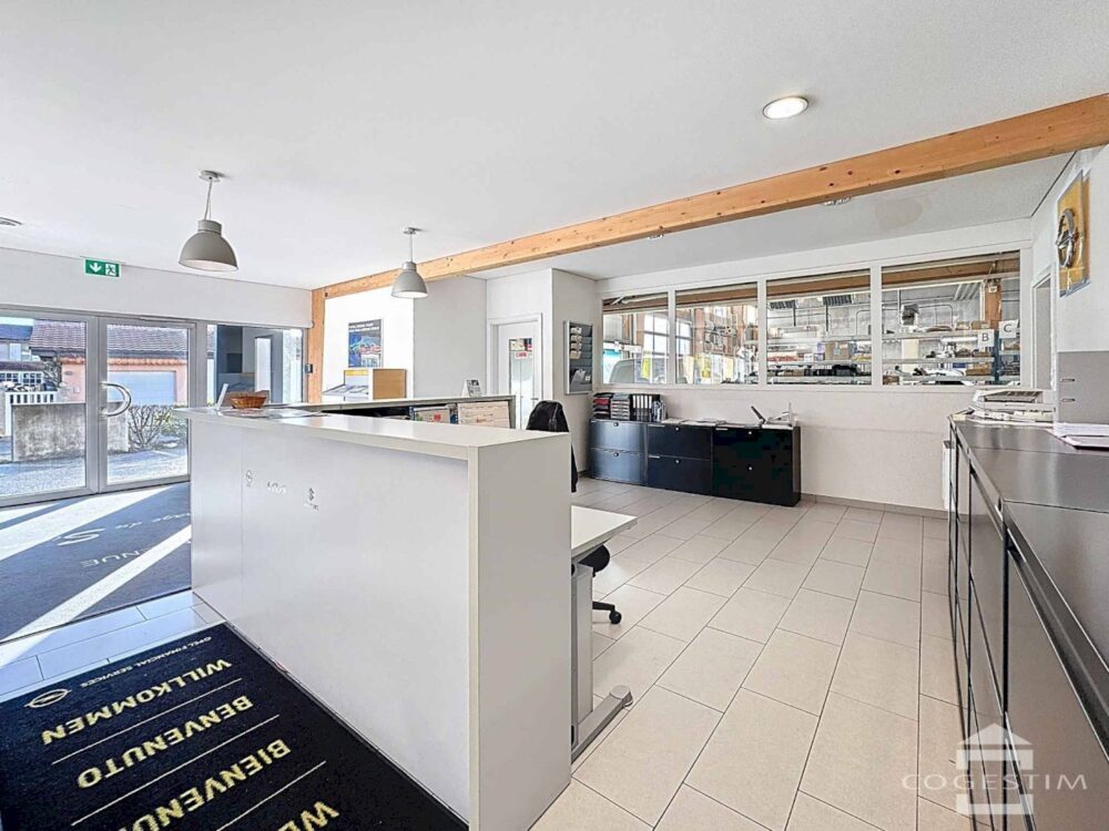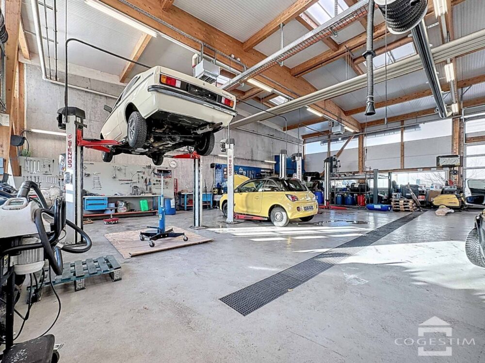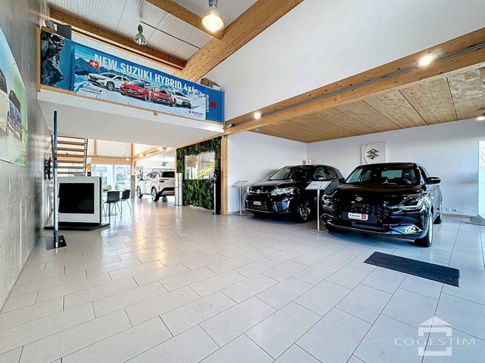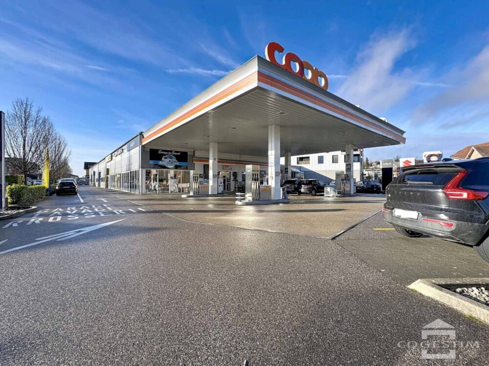 Elle comprend un garage avec atelier, un espace d’exposition, une station de lavage ainsi qu’une station essence avec shop coop pronto. L’ensemble est complété par 24 places de stationnement.