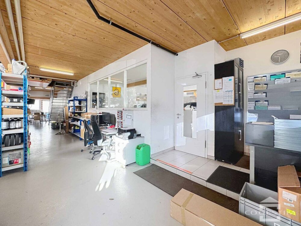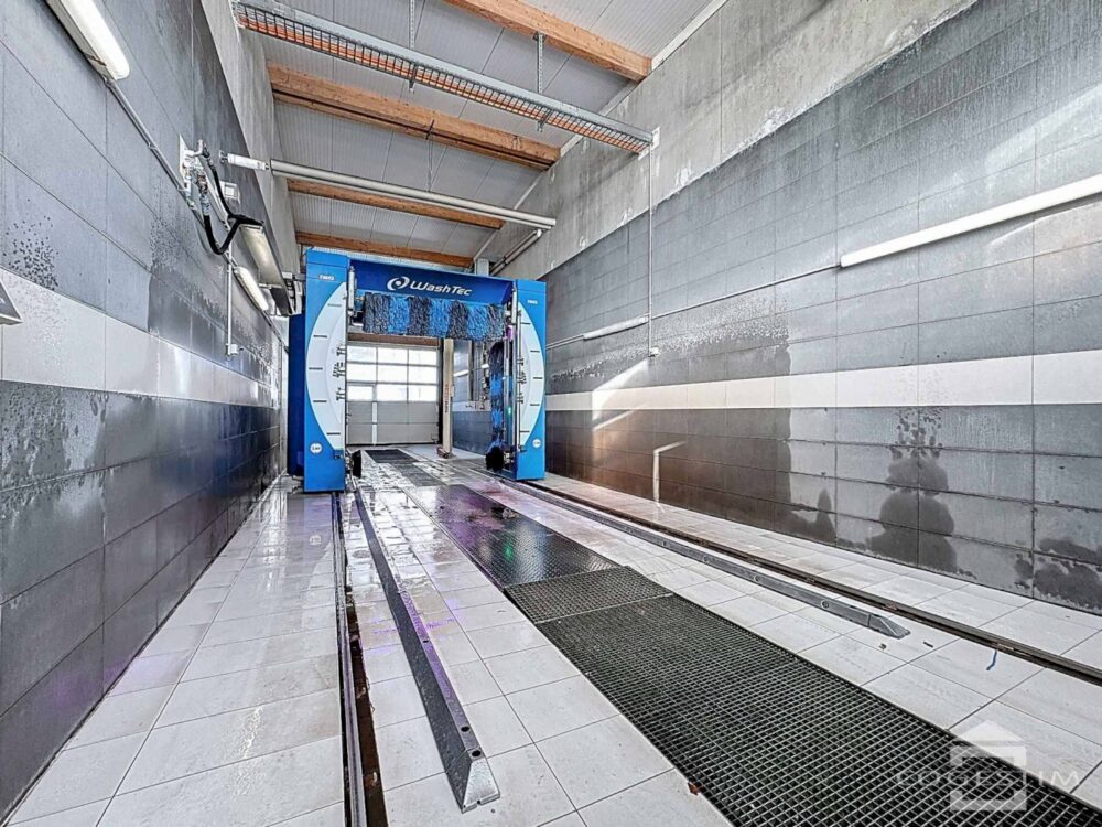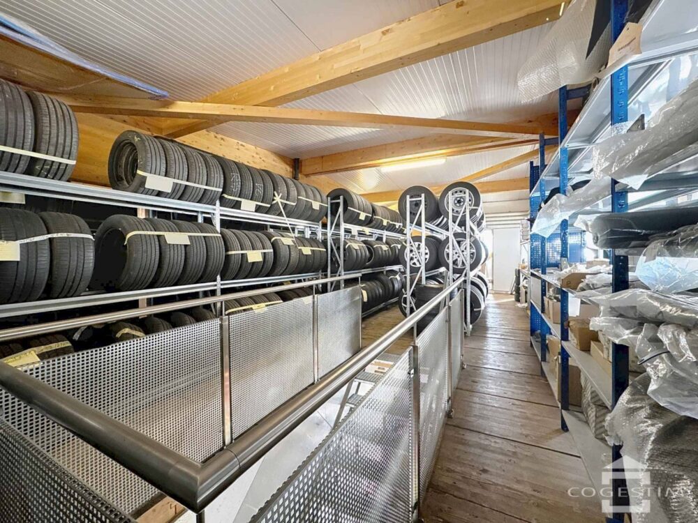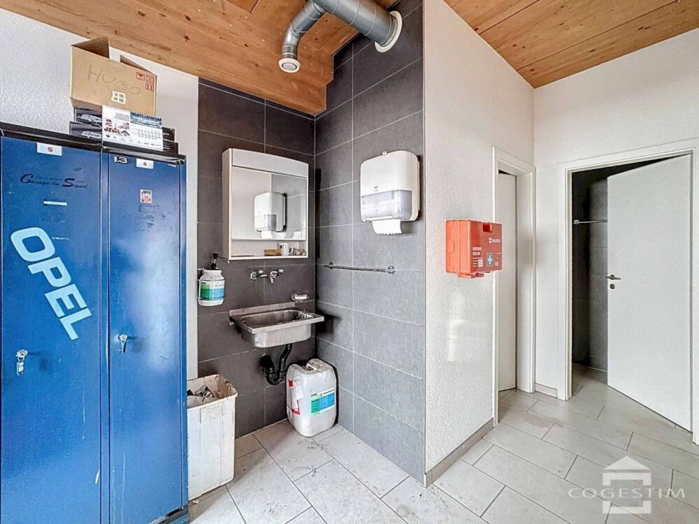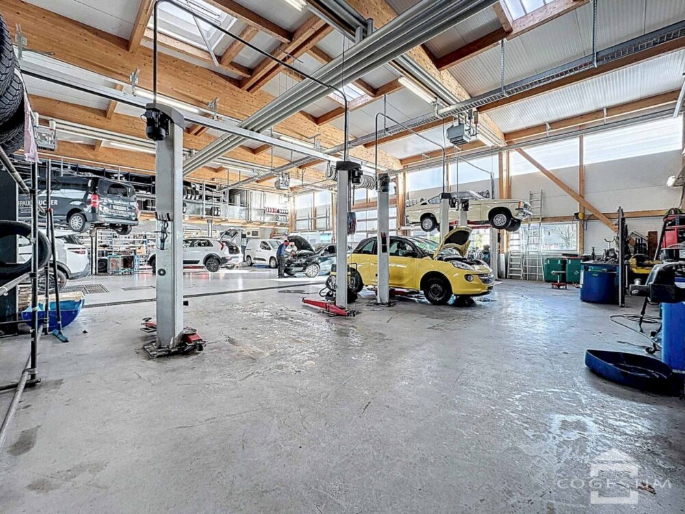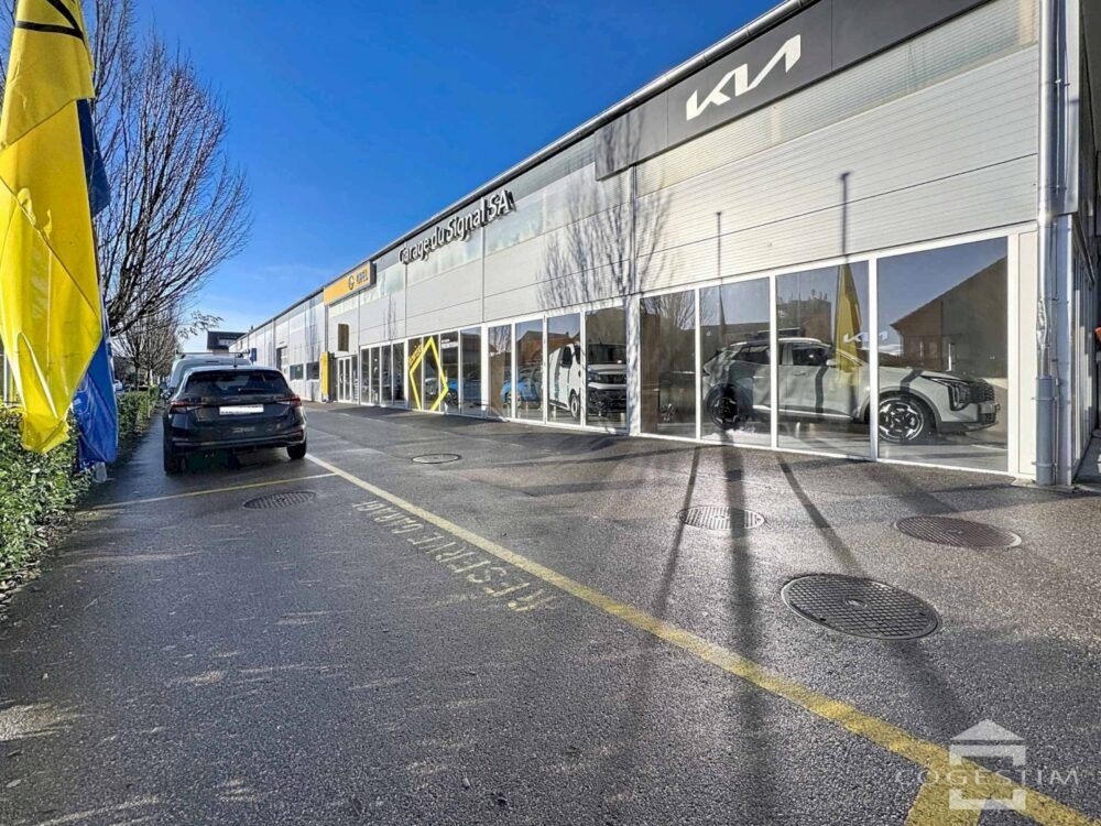 Elle comprend un garage avec atelier, un espace d’exposition, une station de lavage ainsi qu’une station essence avec shop coop pronto. L’ensemble est complété par 24 places de stationnement.