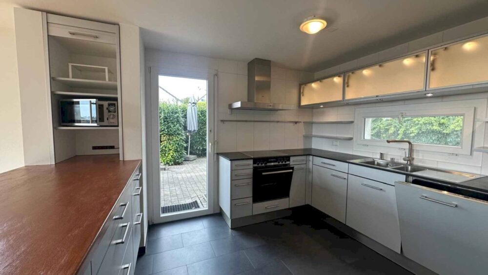Le rez-de-chaussée est composé d’une jolie entrée avec wc/visiteurs, d’une grande cuisine moderne totalement équipée avec accès sur une terrasse, d’un grand séjour recouvert d’un parquet et d’une cheminée, ainsi qu’une spacieuse chambre à coucher.