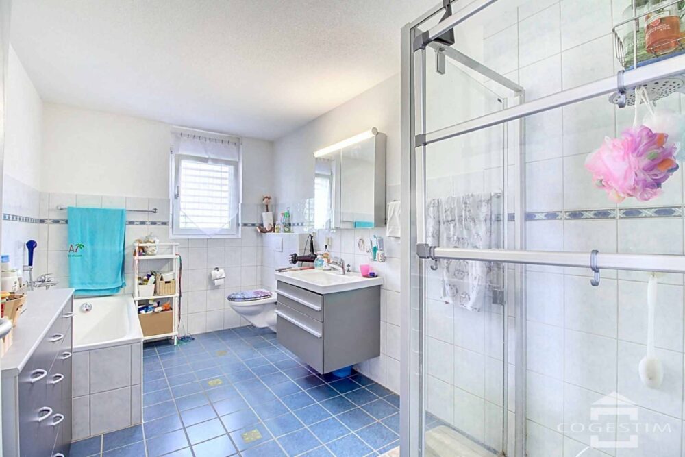Construite en 2009 sur une parcelle de 837 m², la propriété propose de beaux volumes et un agencement fonctionnel. L’extérieur comprend une terrasse partiellement couverte, un jardin arboré, une piscine enterrée (env. 4 x 9 m), ainsi que 4 places de parc extérieures.