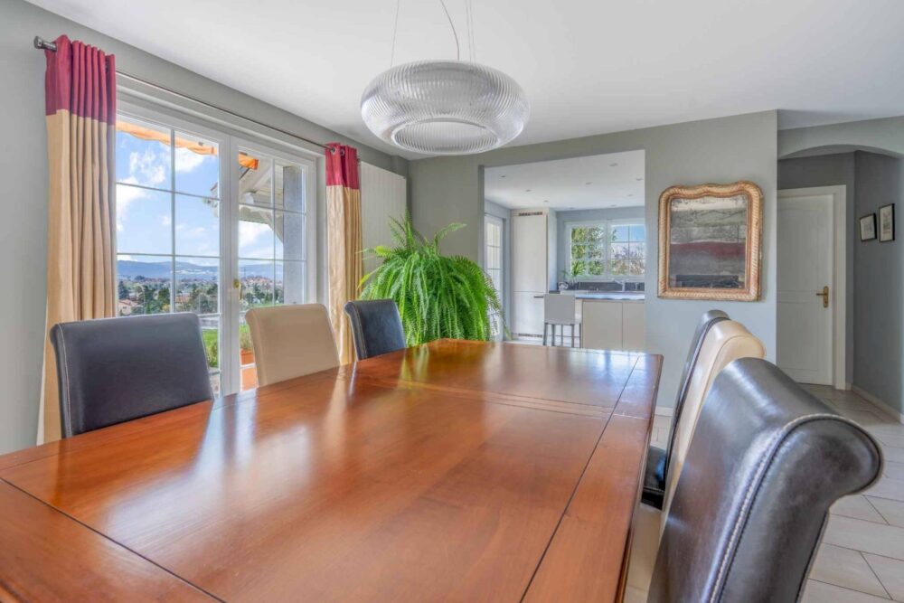 Implantée sur une parcelle d’environ 1’400 m², la maison développe près de 190 m² habitables dans une atmosphère chaleureuse et authentique. Les espaces de vie, baignés de lumière, s’organisent autour d’un séjour avec cheminée, idéal pour une vie de famille confortable et conviviale.