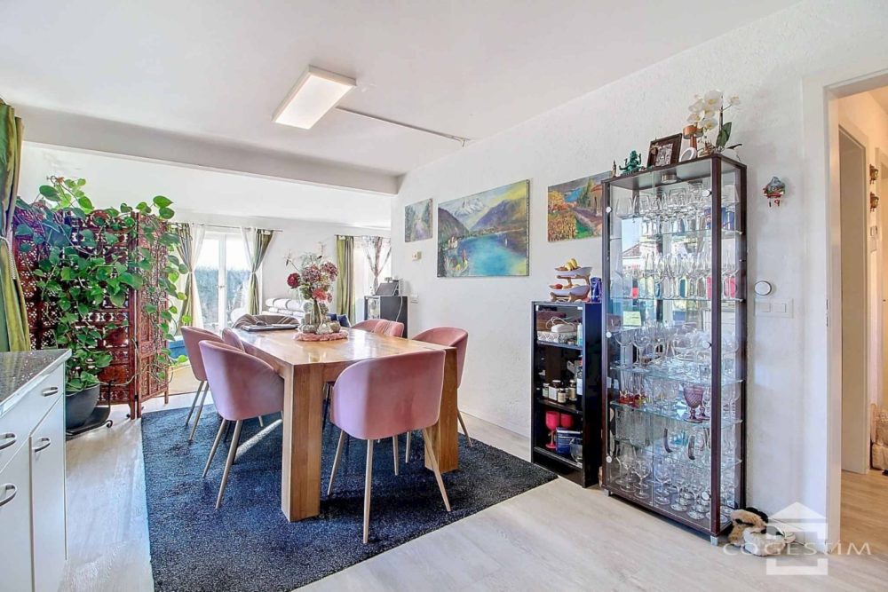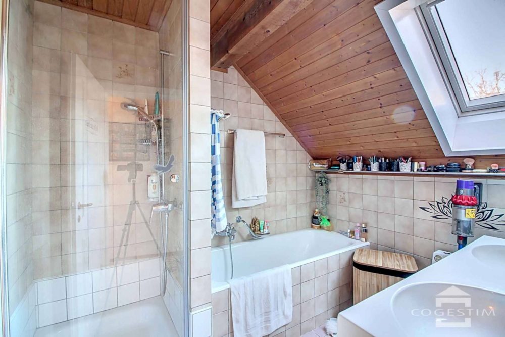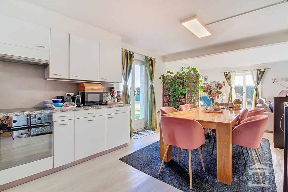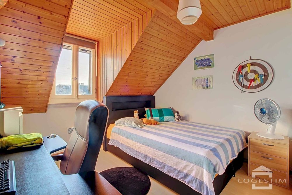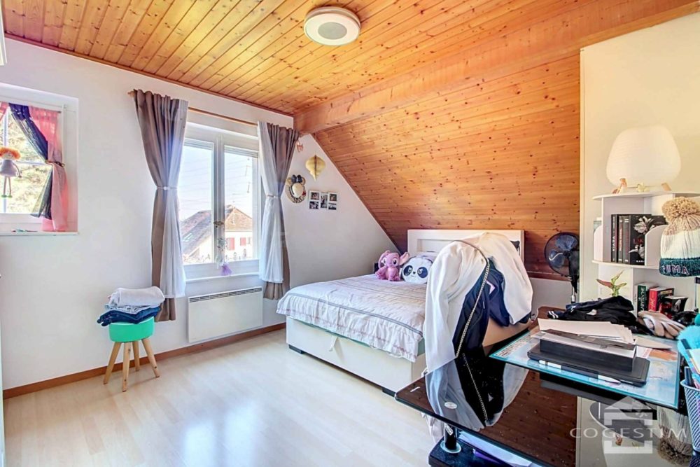 Ce bien de 4,5 pièces sur 3 niveaux est entouré d’un agréable jardin clôturé avec terrasses.