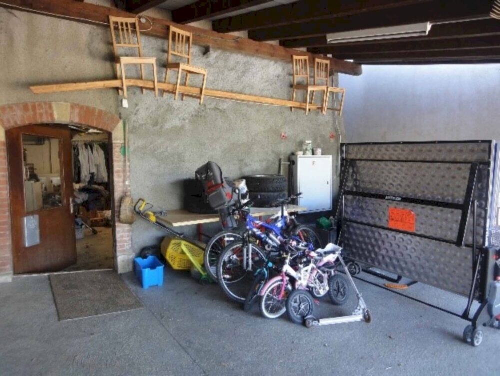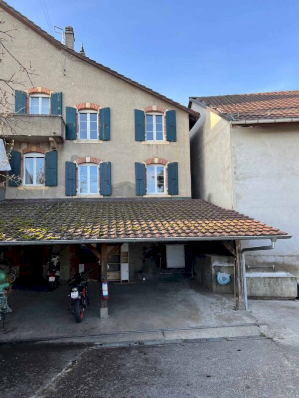 Un couvert, en commun avec l’autre lot, est également disponible (pour moitié) afin d’y stocker du matériel, vélos et autres. On y accède par une rampe d’accès avec un portail.