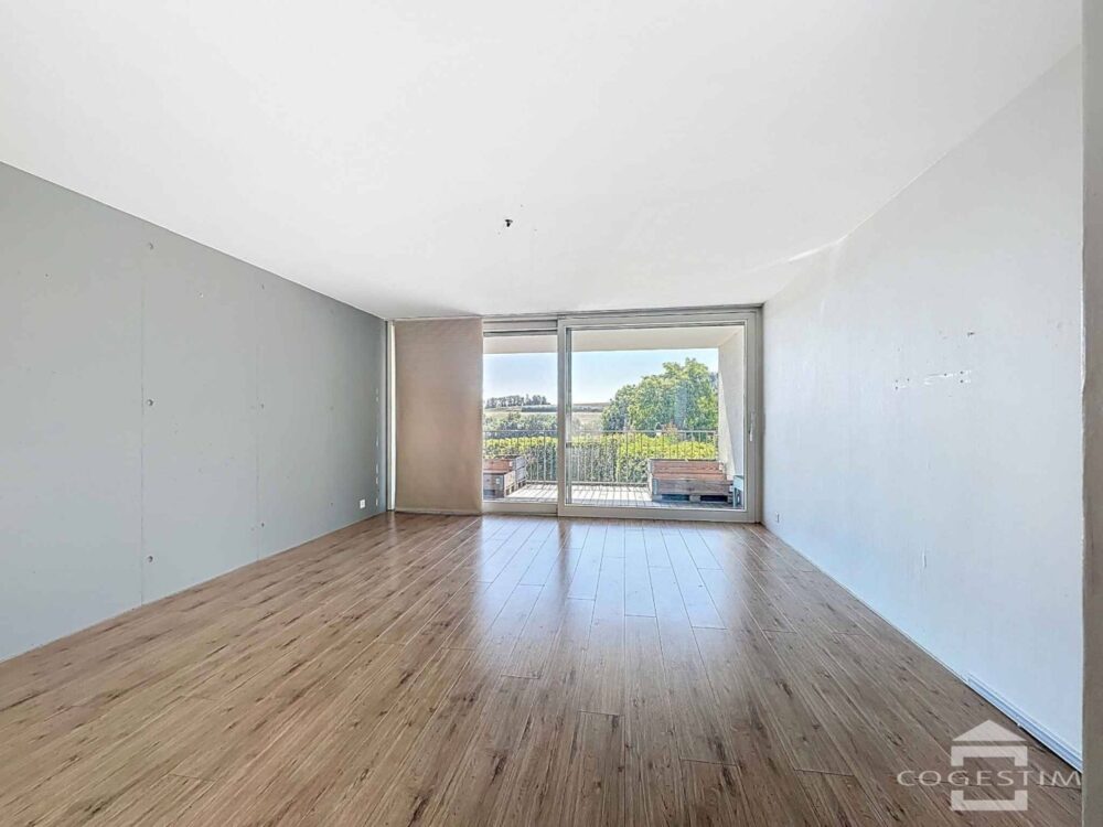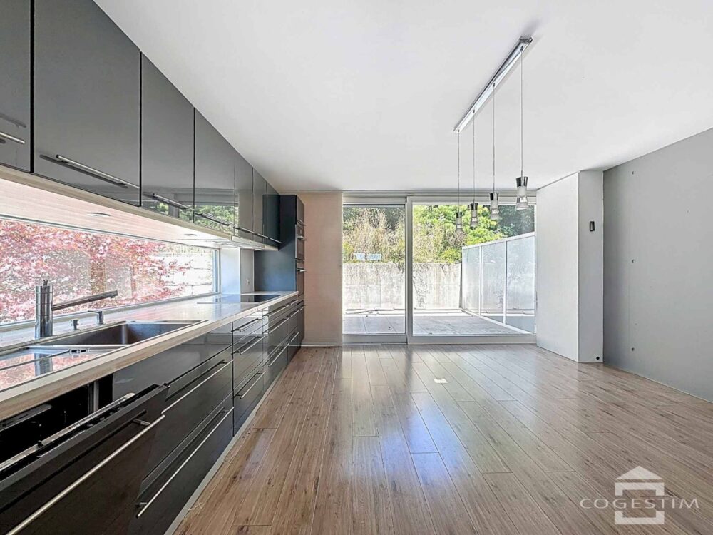 Le rez-supérieur offre une vaste pièce de vie lumineuse avec accès direct à l’extérieur via un balcon et deux terrasses menant au jardin privatif et arboré, agrémenté d’un jacuzzi.