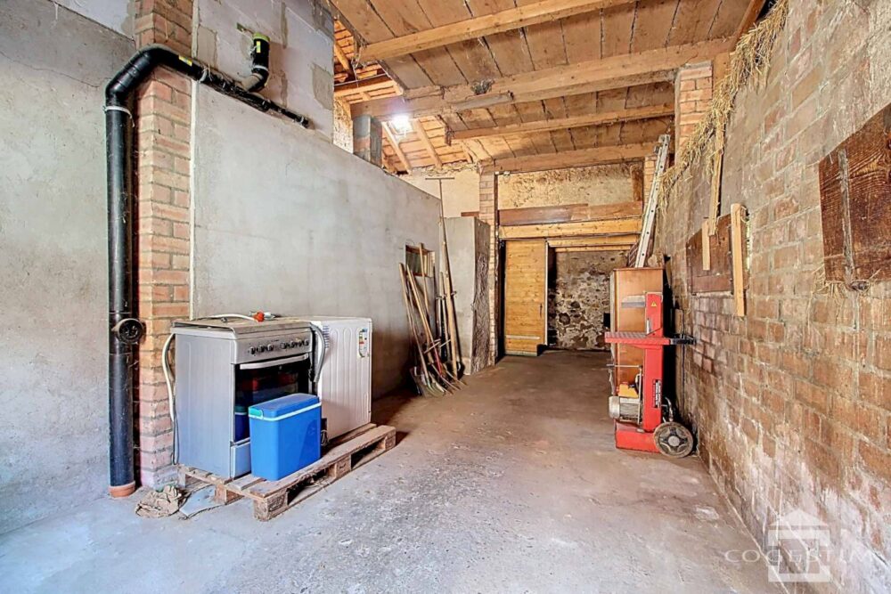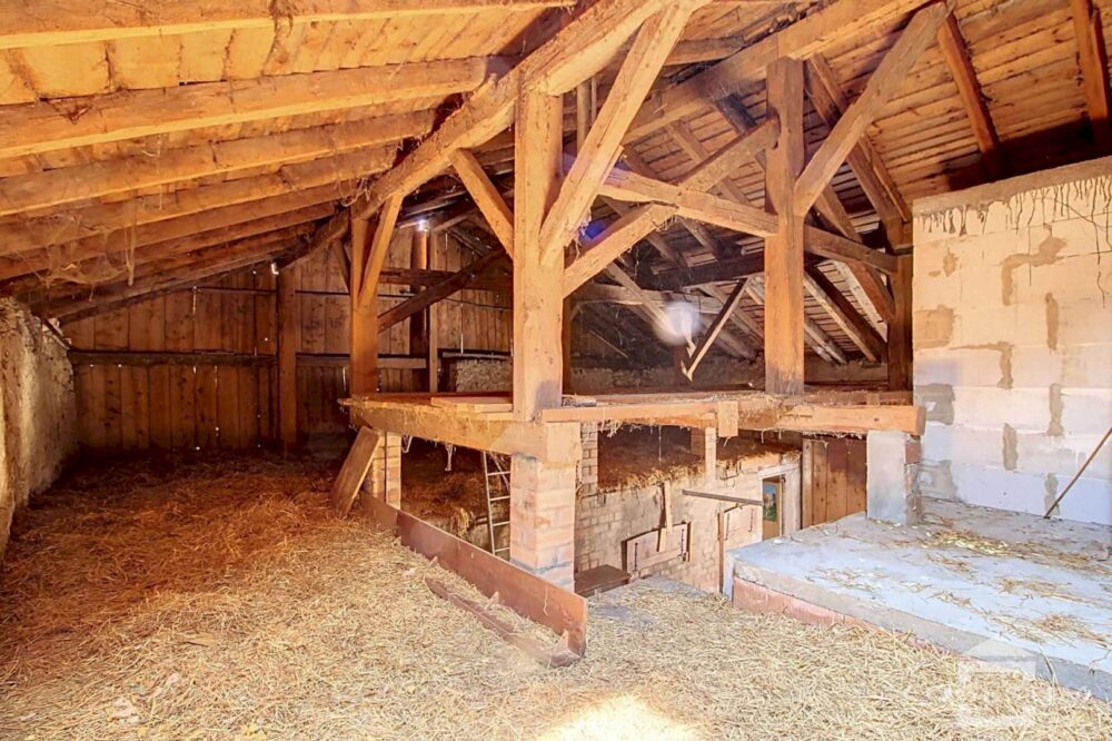 L’habitation se compose d’un séjour agrémenté d’un poêle à bois, d’une cuisine fermée, d’une salle de bains, de WC séparés, de 3 chambres à l’étage ainsi que de combles partiellement aménageables. Le charme ancien est préservé grâce aux boiseries d’origine, aux parquets en bois et à différents éléments d’époque. Une grange attenante, avec porte cochère et belle hauteur sous faîtage, vient compléter l’ensemble et offre de nombreuses possibilités d’aménagement.