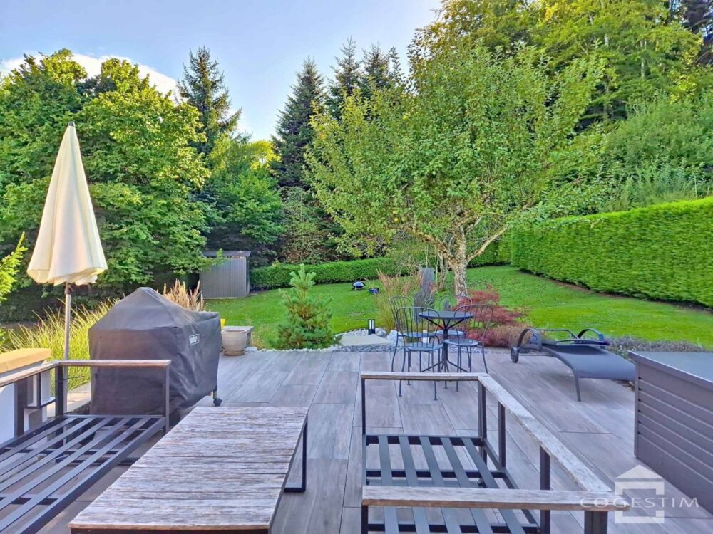 Le séjour s’ouvre sur une grande terrasse de 40 m² et un superbe jardin privatif d’env. 840 m², soigneusement aménagé et offrant une belle intimité.