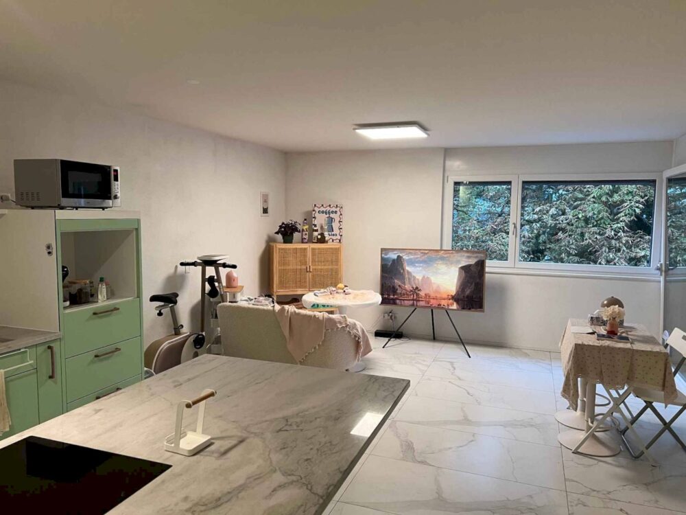 Ein großer Keller im Untergeschoss sowie ein Innenparkplatz (zu CHF 40'000.- zusätzlich zum angezeigten Verkaufspreis) in der Tiefgarage runden diese Immobilie ideal ab.