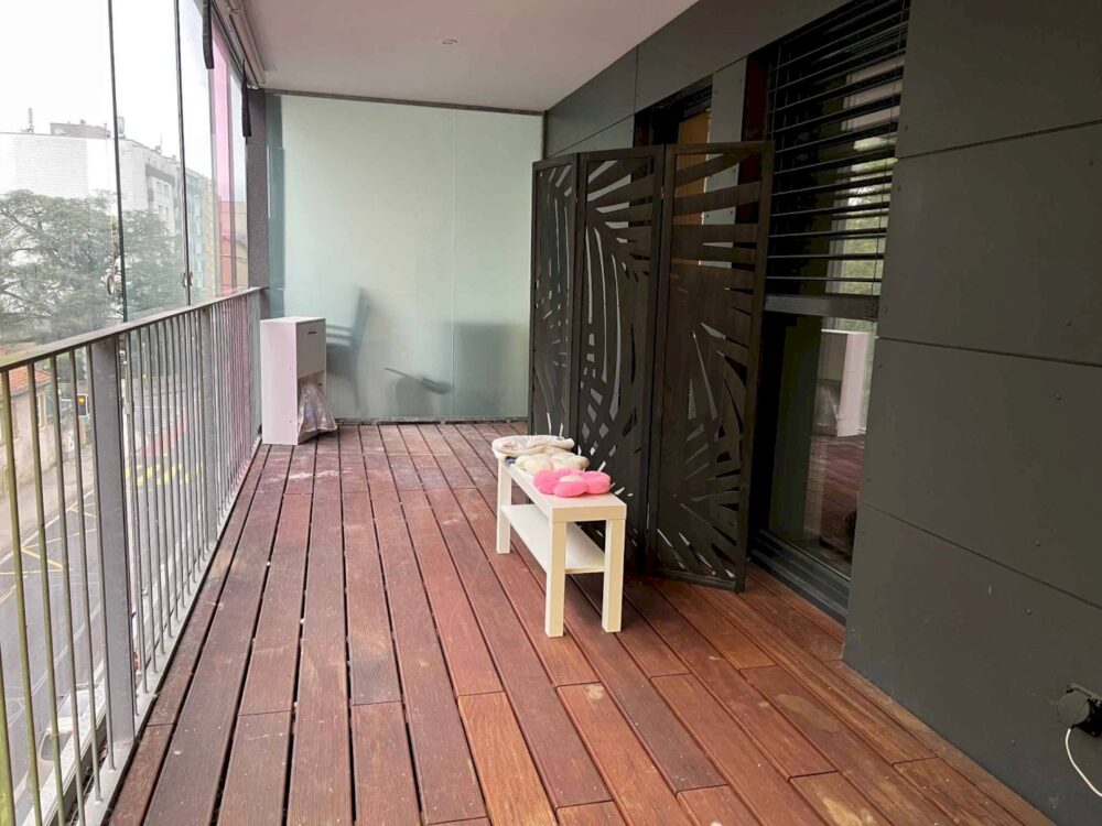 - eine große Loggia (~ 14 m²) mit Glasdach, die nach Südwesten ausgerichtet ist