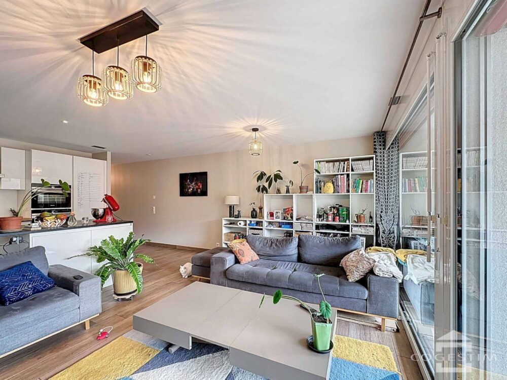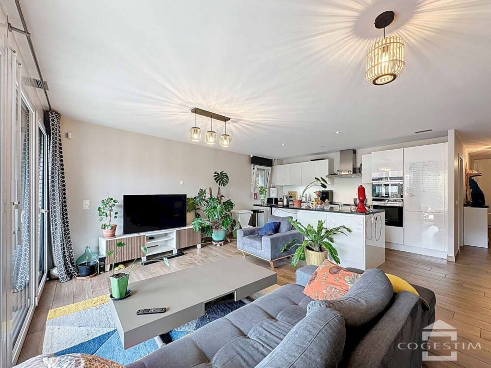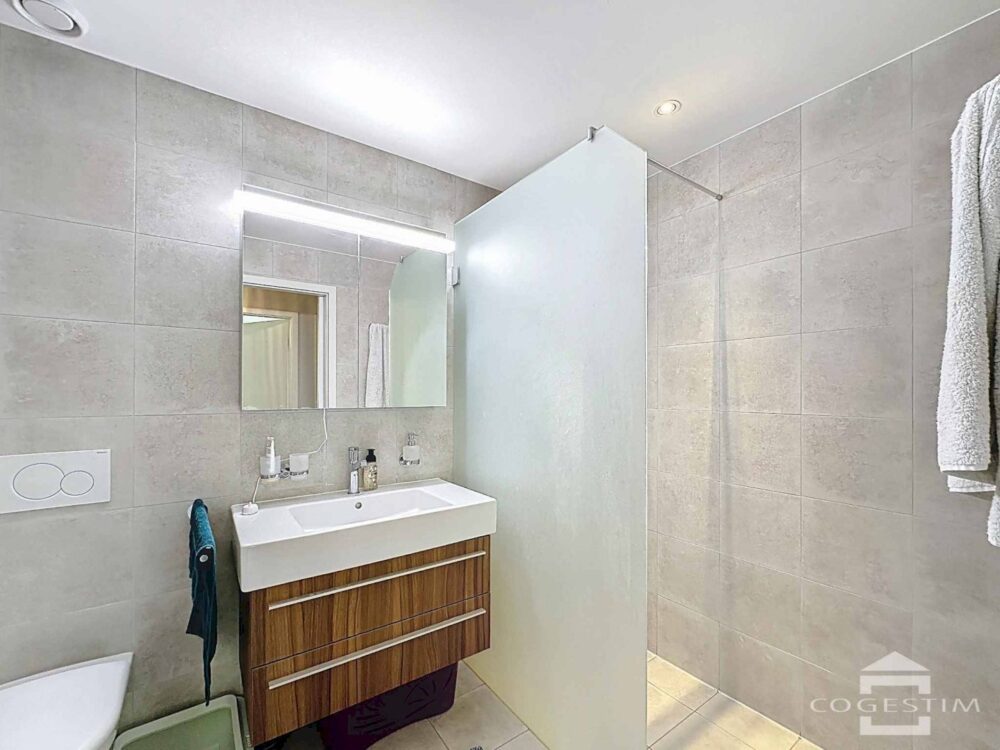 This beautiful flat, built in 2013, offers a comfortable, light-filled living environment thanks to its westerly aspect. It comprises an entrance hall with storage space, an open-plan kitchen, a spacious living room, three bedrooms and two shower rooms.