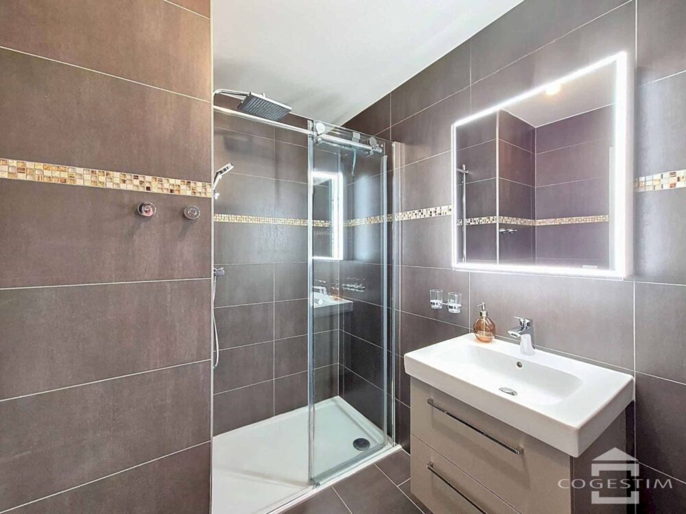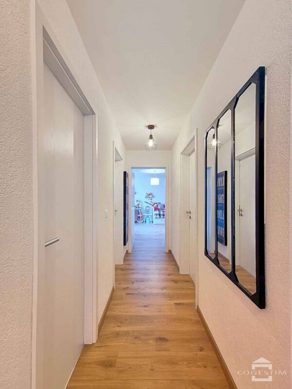 Discover this flat with its contemporary lines, ideal for a small family wanting to have all the facilities close at hand!