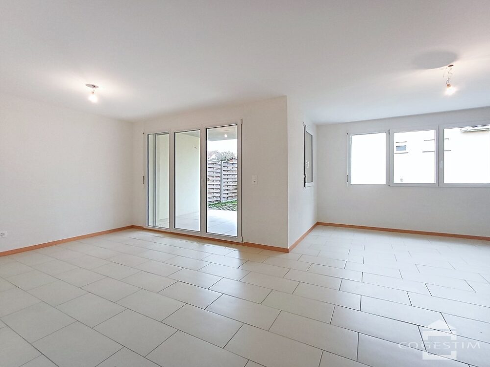 Candidature en ligneLocated in a quiet and pleasant area of Dompierre, this charming 3.5-room ground floor flat offers a comfortable living environment.