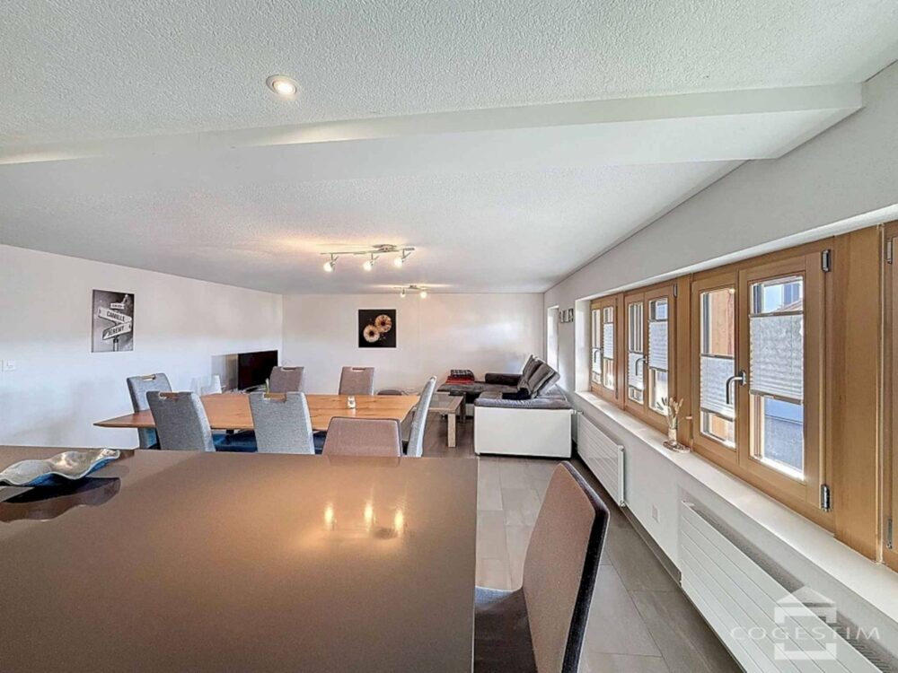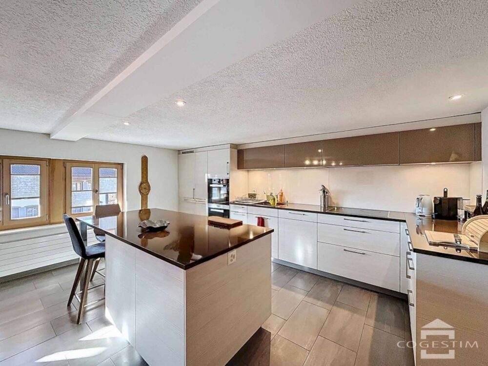 Très bel appartement de 4,5 pièces situé au 1er étage d’une ferme rénovée avec beaucoup de cachet.