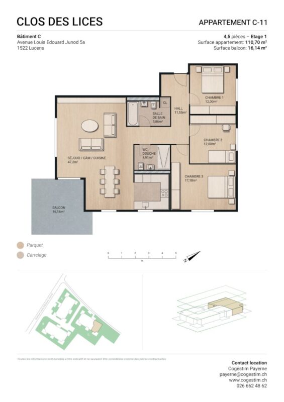Candidature en ligneAppartement neuf de 4.5 pièces d’une surface d’environ 110 m2 se compose comme suit: