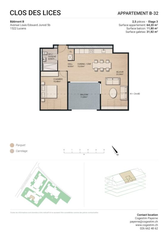 Appartement de 2.5 pièces d’une surface d’environ 64 m2 se compose comme suit: