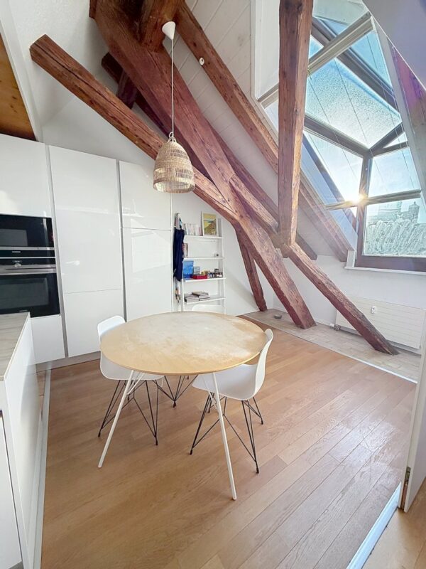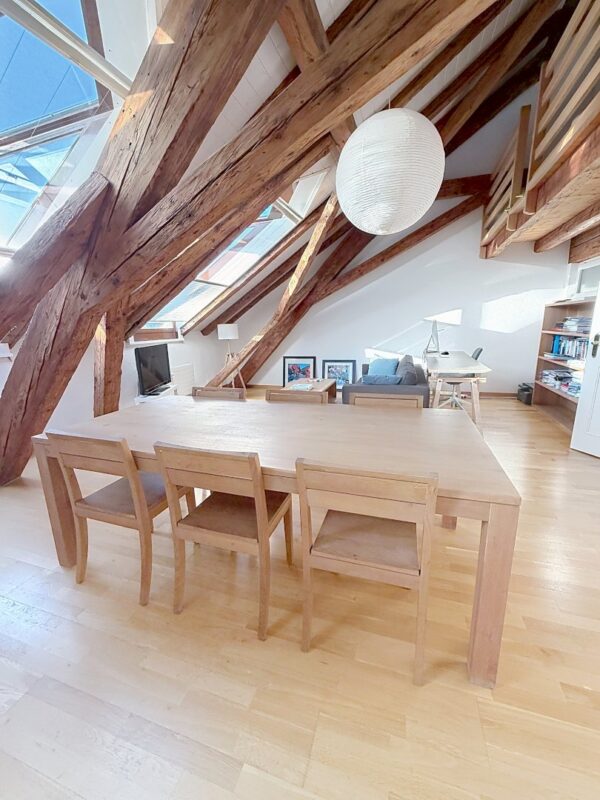 Candidature en ligneIdéalement situé au coeur de Morges, ce logement de 170 m2 avec poutres apparentes se compose comme suit: