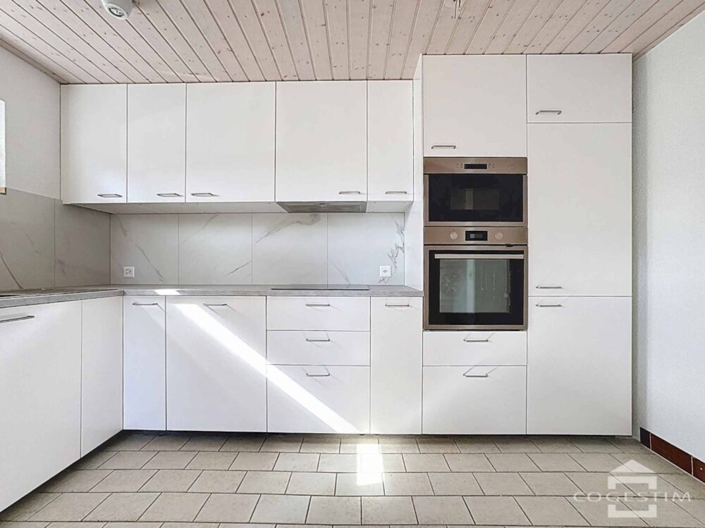 – Une cuisine fermée avec un espace « salle à manger »