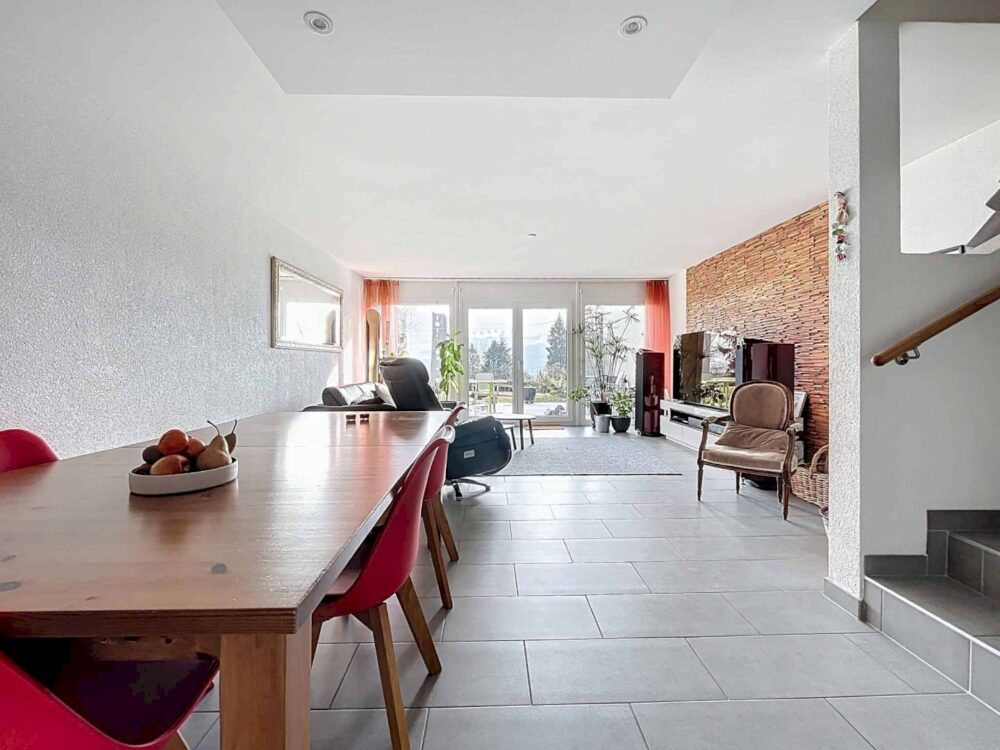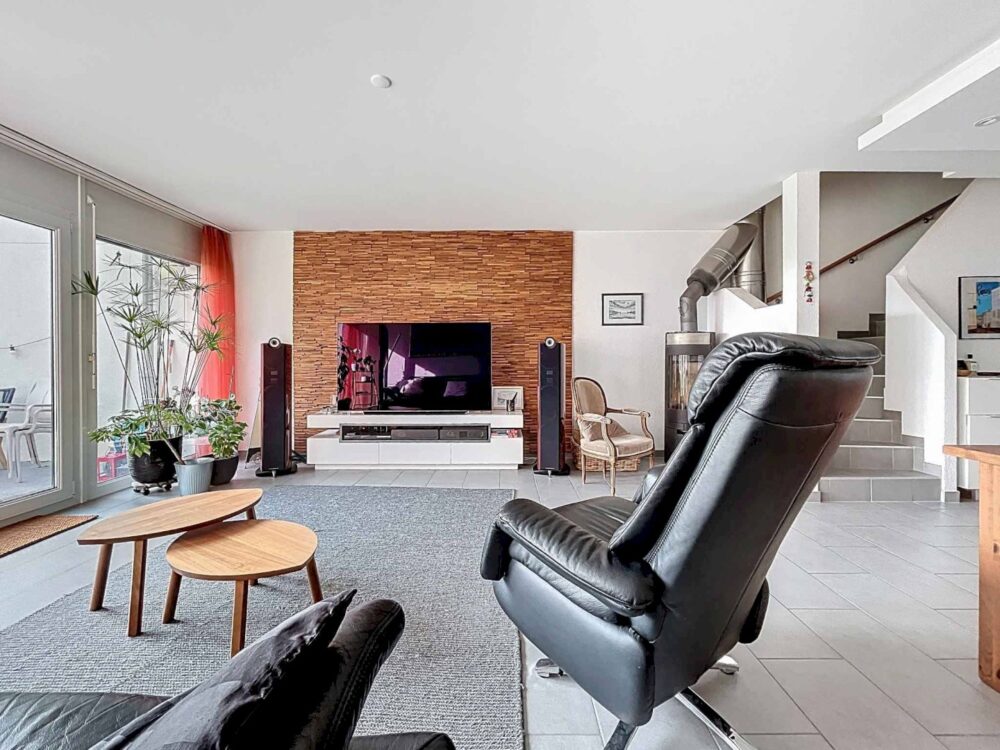 – Grand séjour lumineux avec poêle