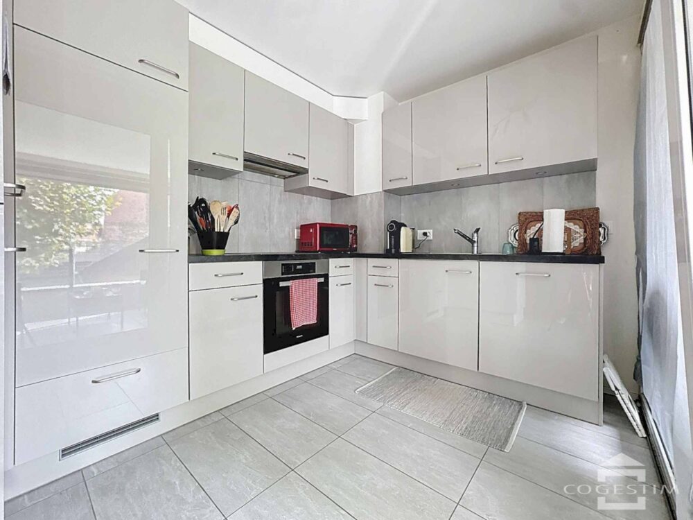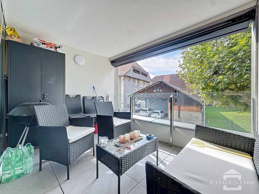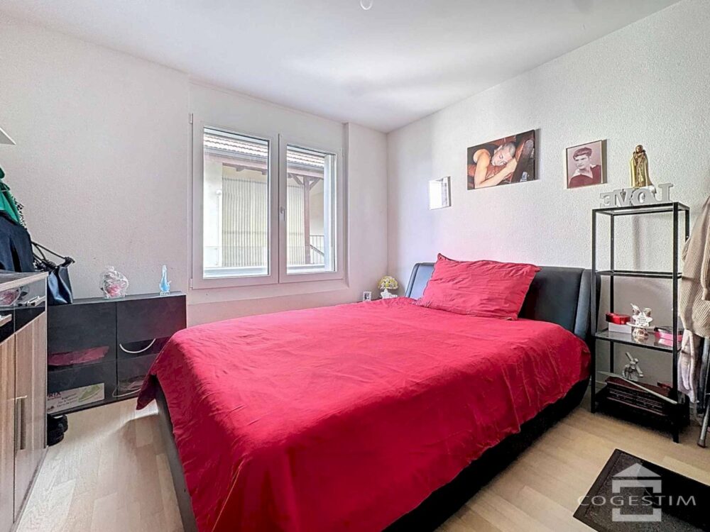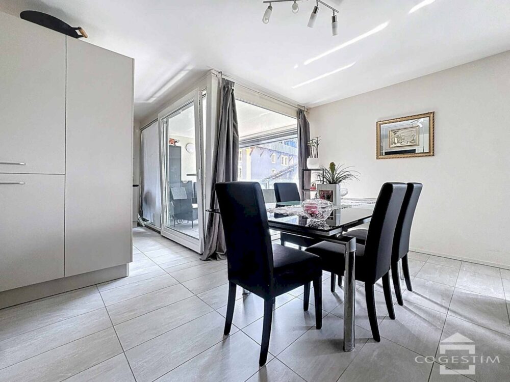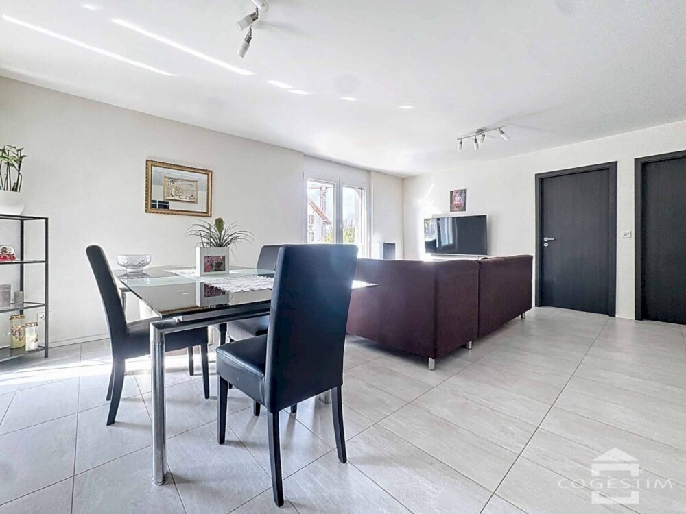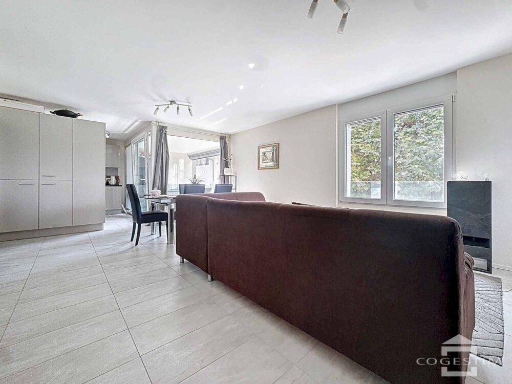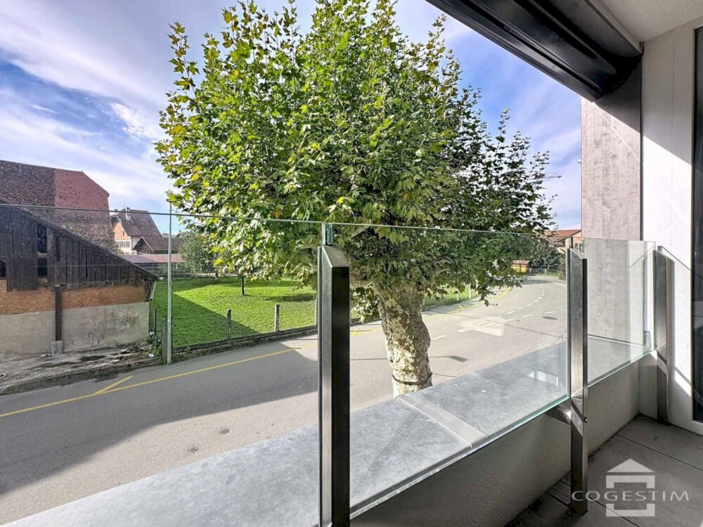 Situé au 1er étage d’un immeuble récent, cet appartement de 3.5 pièces séduit par sa luminosité, son agencement fonctionnel et sa proximité immédiate avec toutes les commodités de la ville.