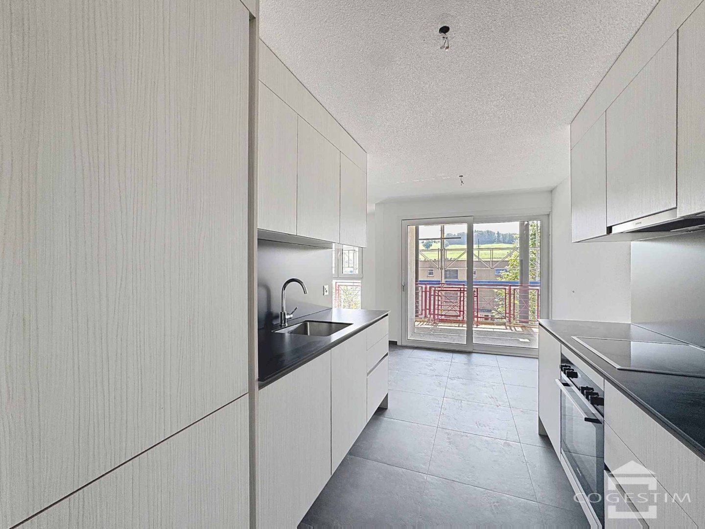 Cet appartement rénové de 4,5 pièces, d’une surface PPE de 107,32 m², avec deux balcons totalisant 15,1 m², se trouve dans un quartier verdoyant de la ville de Romont. Dans un cadre tranquille, loin des agitations citadines, tout en étant à deux pas de la nature ainsi que du centre-ville.