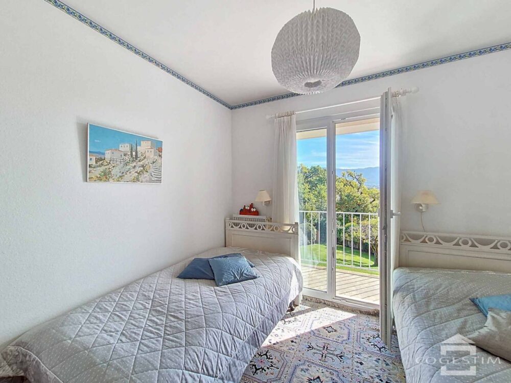 L’étage est destiné à la partie nuit avec une chambre parentale et sa salle de bains privative, 3 chambres, toutes orientées sud et donnant accès sur un balcon qui occupe la longueur de la façade. Une salle de bains complète l’étage.
