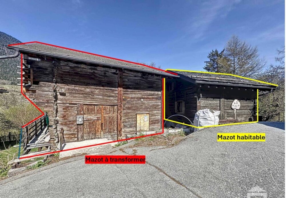 Découvrez ce charmant ensemble de deux mazots traditionnels, situés côte à côte, offrant un cadre paisible avec une vue imprenable sur les montagnes.