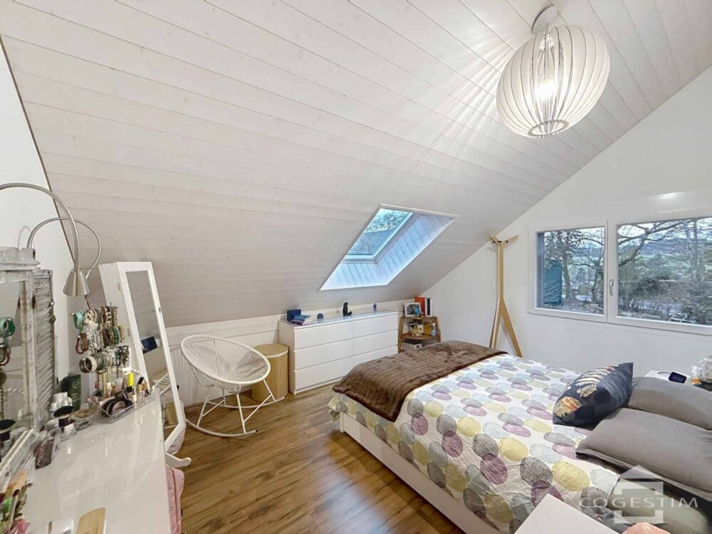 Le rez-de-chaussée accueille une belle pièce de vie avec accès direct à un grand jardin-terrasse de 370 m², parfait pour profiter des beaux jours. L’étage et les combles proposent plusieurs chambres, dont une suite parentale, ainsi que des espaces polyvalents pour bureau ou salle de jeux.