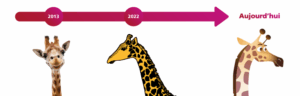 Un an plus tard, Gina, la girafe a fait son apparition pour gagner ce capital sympathie. Avec sa vue d’ensemble, elle incarne la vision et la hauteur d’un regard dont nous avons besoin dans notre métier.