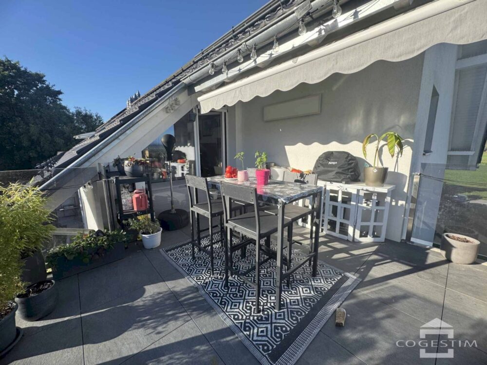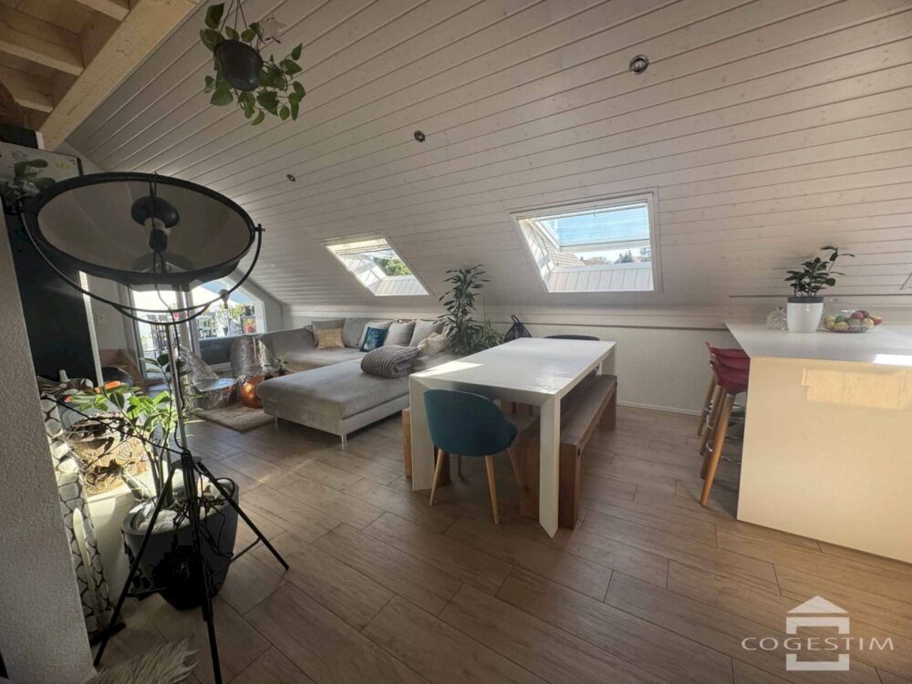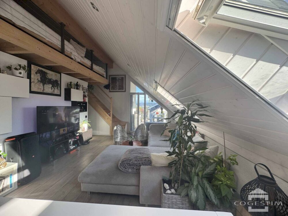 Die Wohnung umfasst eine Eingangshalle mit Einbauschränken, ein geräumiges Wohnzimmer mit Esszimmer und offener Küche von über 30 m², eine Master-Suite mit Badezimmer, Ankleidezimmer im Zwischengeschoss sowie zwei Schlafzimmer, die jeweils über ein Zwischengeschoss verfügen. Ein Duschbad mit Waschsäule vervollständigt die Aufteilung.