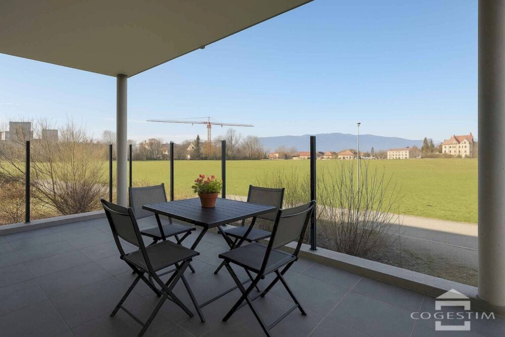 The bright, modern living space opens onto a fully equipped kitchen with access to a 14.7 m² balcony overlooking the lake. The spacious living room also benefits from a 5.1 m² terrace. The apartment comprises three comfortable bedrooms, a modern bathroom and a guest toilet.