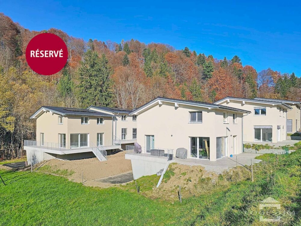 Located in the charming commune of La Roche, a village undergoing economic and demographic expansion, this new contemporary villa enjoys a pleasant location on the edge of a forest and beside a stream, in a peaceful, leafy country setting.