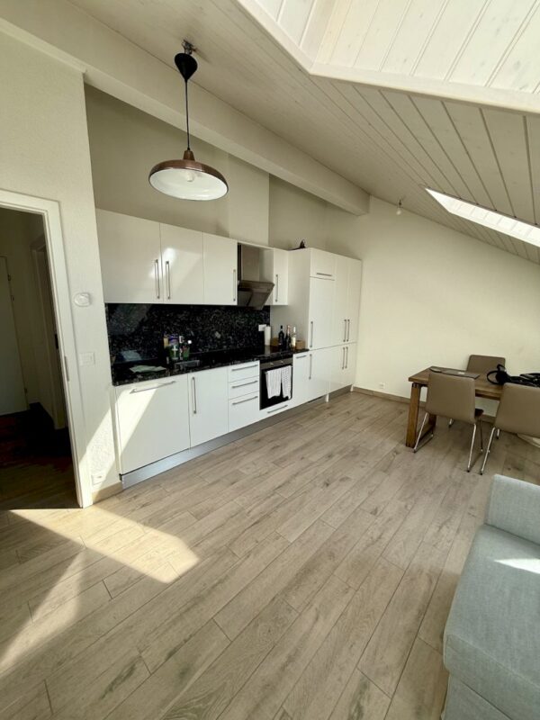 This modern, spacious attic flat is close to motorway access and just 15 minutes from Lausanne city center.