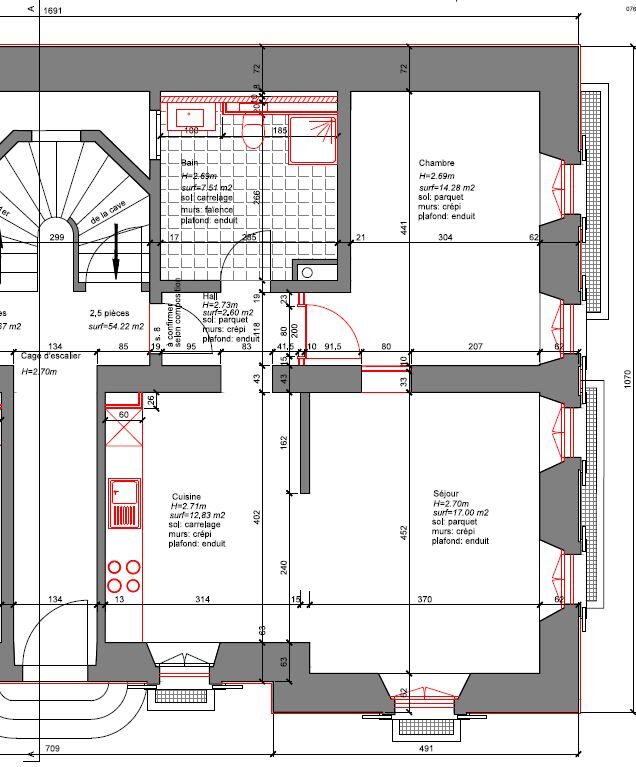 Loyer : CHF 1’276.- + Charges : CHF 130.-